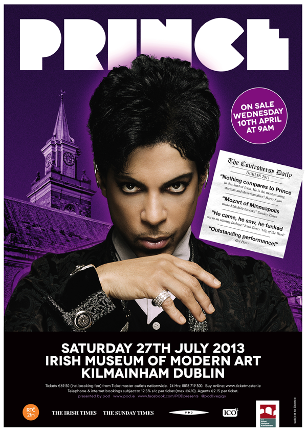I suppose I can post this one now. This show was cancelled, never went on sale, never announced. Prince's people supplied the photo of him, that's all. The rest was left to me, though it did have to be approved by "Prince himself". Now I don't know if that was bullshit or not but I heard back that "he" loved the poster. That was a great day. The Controversy Daily bit was the promoter's idea. RIP